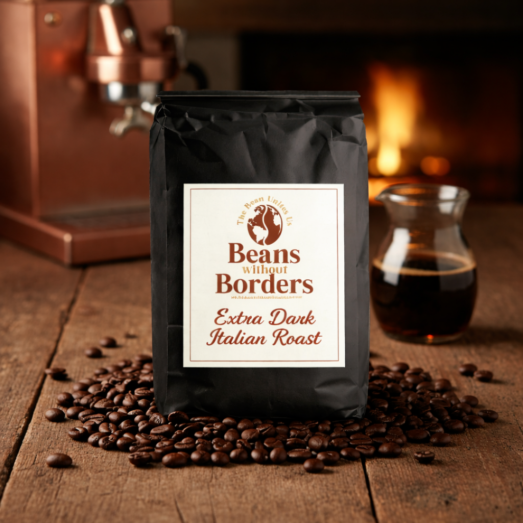 Elevate your coffee routine with Beans Without Borders' extra dark Italian roast. Embrace the unmatched richness and depth of flavor and discover why this roast is a favorite among connoisseurs. Indulge today and savor a cup of excellence.